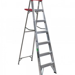 Escalera de tijera de aluminio con tapa ProTop® y charola, de 7 pies de altura y capacidad de carga de 150 Kg. Tipo III